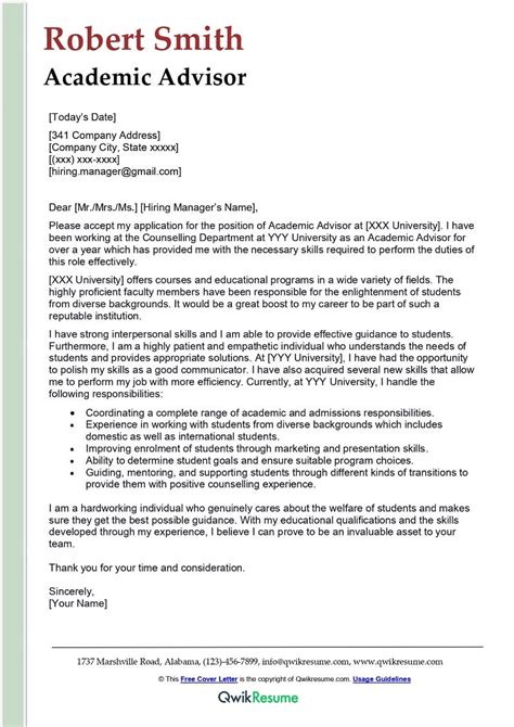 Academic Advisor Cover Letter Sample - Discover effective strategies and gain a deeper understanding of how to. These examples will provide you with valuable insights and inspiration as you craft your own impactful cover letter. Examples of academic advisor cover letters. Academic advisor cover letter examples. Professional academic advisor cover letter samples from real job applications.